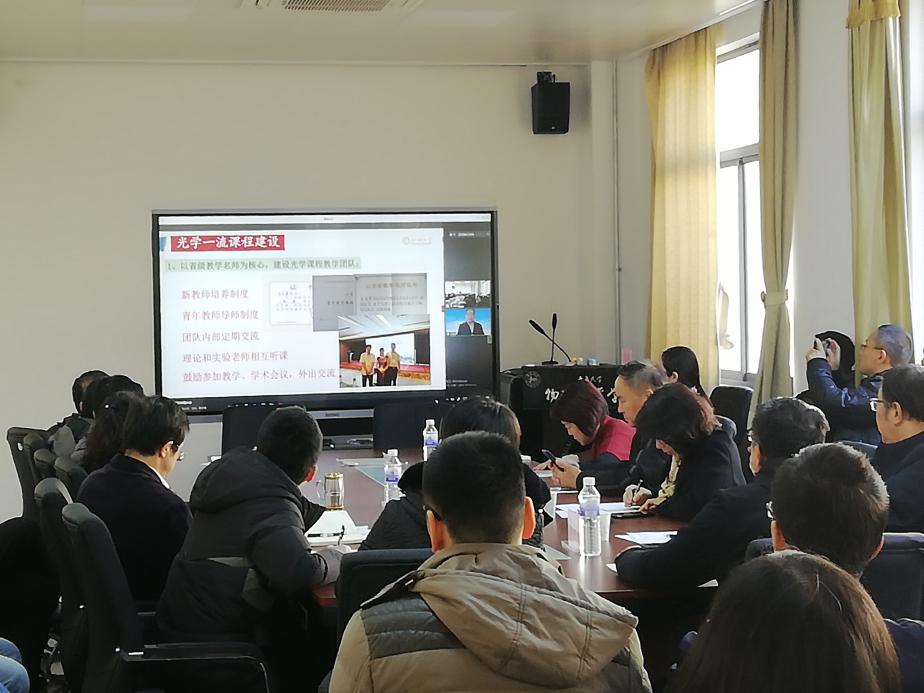 12月3日上午,PA集团官方网站召开首届一流课程与“课程思政”建设研讨会。山东大学线上线下融合的国家一流课程《医用物理》负责人刘凤芹教授、聊城大学线下国家一流课程《光学》负责人王文军教授、教育部物理教学指导委员会委员王霞教授、山东物理学会秘书长张承琚教授、山东科技大学教学督导委员会课程思政负责人张鲁殷教授出席研讨会,研讨会由学院院长滕冰教授主持,学院全体教师参加会议。