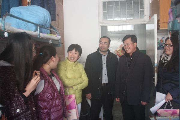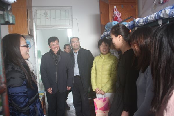 12月29日下午,PA集团官方网站党委书记徐龙飞、院长孔伟金、副书记牟晓燕及辅导员走访了每一个物理学(师范教育)专业的学生宿舍,和同学们进行了亲切交谈。