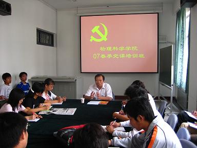 PA集团07春季党课培训班日前结业。本期培训班共有43名入党积极分子参加。他们学习了党章、党史、当代大学生应该自觉接受党组织的培养和加入党组织是当代大学生的正确选择等内容,为他们的思想进步和参加校党课的学习奠定了基础。图为PA集团大学生德育导师、校纪委书记、监察室主任吴绍欣同志在培训班授课。