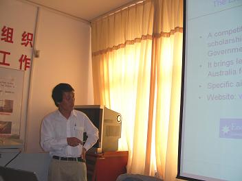 2007年10月15日和16日下午3:30,刘宗文博士分别为PA集团师生作了两场学术报告。刘宗文博士曾在PA集团工作多年,现在澳大利亚悉尼大学国家电镜中心工作,是澳大利亚伊丽莎白II世皇家学者。他深入浅出地讲述了碳纳米管温度计的发现、发展和应用;也系统讲述了通过高分辨电镜的各种手段,研究组在材料研究方面所取得的进展。在报告开始前,他还介绍了澳大利亚国家奖学金和学校奖学金的申请方法,热情鼓励大家积极申请赴澳洲学习和访问的各类资助,活跃地参与学术交流活动。