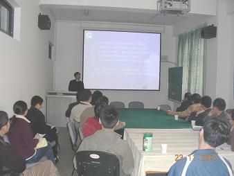 2007年11月23日下午,烟台大学凝聚态物理研究中心的戴振宏教授应邀为PA集团老师和研究生做了“低维纳米结构的含时动态量子输运特性”的学术报告,戴振宏教授系统介绍了低维纳米结构的研究历史,详细阐述了该领域近年来的实验和理论研究成果。戴教授领导的研究小组利用数值模拟的方法从理论上对此类结构进行了详细的研究,解释了它的微观物理机制。戴教授还介绍了他们研究小组的成员以及与清华大学和中科院物理所的学术合作项目。报告会结束后,戴教授与PA集团师生进行了讨论和学术交流。