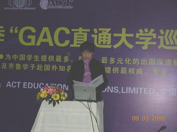 3月9日上午,在我校图书馆学术报告厅举行了PA集团官方网站ACT中心08春季班开学典礼。PA集团官方网站ACT中心07秋季班取得了良好的成绩,得到了学员及家长的好评和社会的广泛认可,也得到了ACT中国区总部的肯定和表扬。08春季班报名踊跃,经考试选拔最终确定了22名学员。在开学典礼上,PA集团领导、ACT中国区总裁到会祝贺,PA集团官方网站ACT中心主任、学员家长、新老学员也发表了热情洋溢的讲话。典礼结束后举行了GAC直通大学巡展活动。