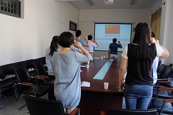 会上,黄国俊带领青年教师进行了庄严的教师宣誓,宣誓营造了一种尊师重教的文化氛围,激发了教师乐教好学的内生动力。随后,黄国俊主持进行了青年教师座谈。黄国俊强调,在目前学校深入推进综合改革和加强“双一流”建设这个大背景下,人才建设和青年教师发展得到了空前的重视,今天举行青年教师座谈会,一是庆祝教师节,二是听听青年教师的所思所想,三是为学院今后发展寻找素材。黄国俊指出,大家选择到这里来工作,就要有所追求、有所发展,就要注重个人发展规划。为此,他对青年教师提了四点建议:一是要有坚定的政治立场,通过上课或担任辅导员、班主任、学业导师等形式或途径切实做好祖国建设接班人的培养工作;二是要追求卓越,不断进取,本人要积极提升学术能力,同时学院也会通过国基培训等形式提供帮助;三是要早定位,早进入角色,有的教师是刚入职,有的教师已经入职三年,大家最终都要走上讲台教书育人,走上讲台就要体现出自己的知识和能力储备,现在要抓紧锻炼,制定个人发展规划,尽快进入角色;四是要注意劳逸结合,多锻炼身体,处理好工作与生活关系,适应生活的快节奏,学会快乐并紧张着。黄国俊希望大家以饱满的精神状态、身心健康并心情舒畅地投入到工作中,齐心协力地把学院建设好。最后,他祝大家教师节快乐!