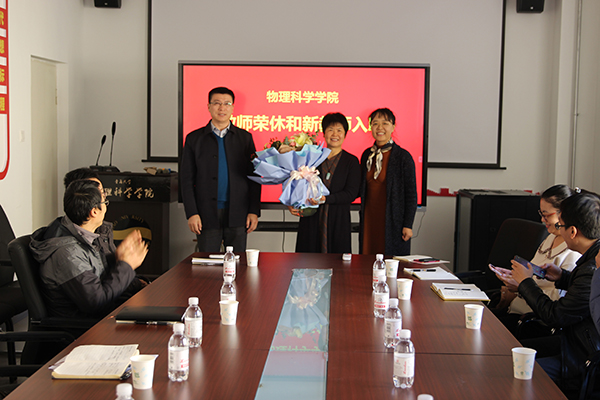 座谈会首先以视频短片的形式,回顾了荣休教师吴运平38年来始终坚守在基础物理教学一线教书育人的从教生涯,并介绍了翟朋博、潘圆圆、李玲琪、赵珊4位新入职教师的个人简况。随后,李升学、滕冰依次为荣休教师吴运平颁发了纪念牌和鲜花,为新入职教师颁发了入职纪念证书。