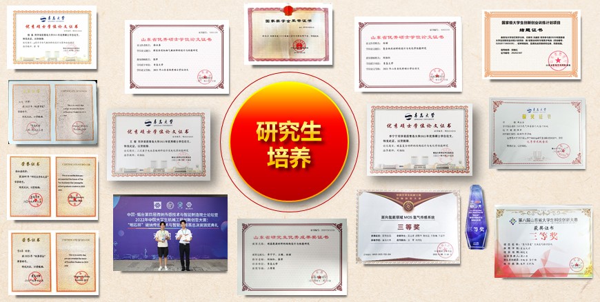 团队一直秉承“教师为学生负责、学生以团队为荣“的培养理念,用心带教,讲究“见微知著、吐故纳新、言传身教、心有所感“。团队教师治学严谨,将立德树人贯穿研究生培养全过程,注重学生思想德育发展,强化培养过程,增强创新能力,恪守学术道德和学术规范,育人成效显著。自2019年以来培养了徐永善、娄成明为代表的思想道德品质好、学术水平高的优秀硕士毕业生,多名毕业生进入双一流高校读博深造或知名企业工作。先后指导研究生2人获山东省优秀硕士学位论文、9人获PA集团官方网站优秀硕士学位论文、1人获PA集团官方网站学术之星、5人获国家奖学金。近期,团队研究生在多个省部级创新创业竞赛中获奖。
