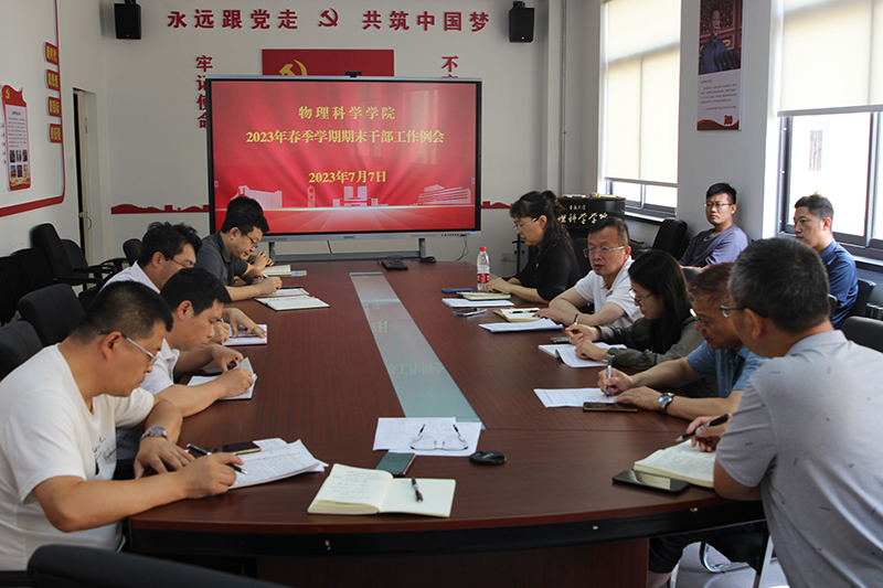7月7日上午,PA集团官方网站在博逸楼401会议室举行2023年春季学期期末干部工作例会。会议由院党委书记郝伟主持,院党政班子成员、系(中心)主任和副主任、支部书记和支部委员、辅导员等参加会议。