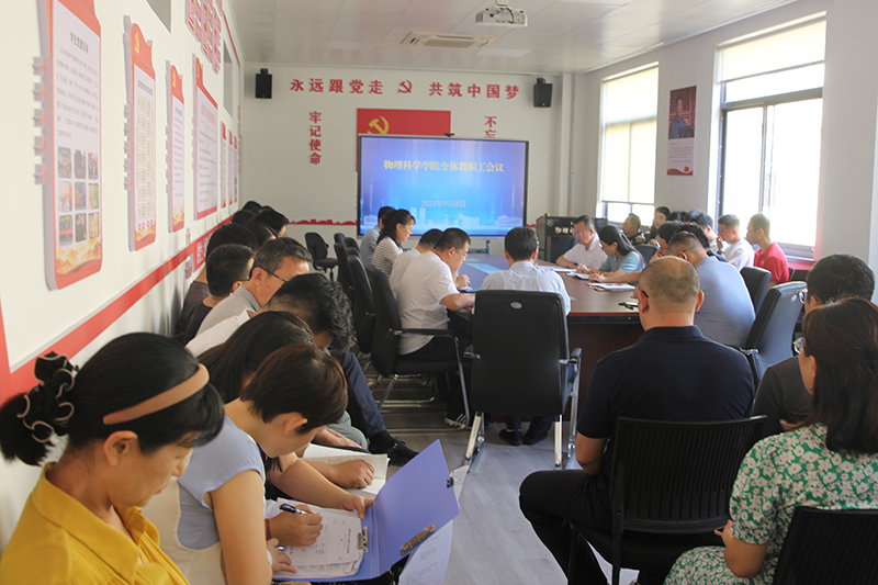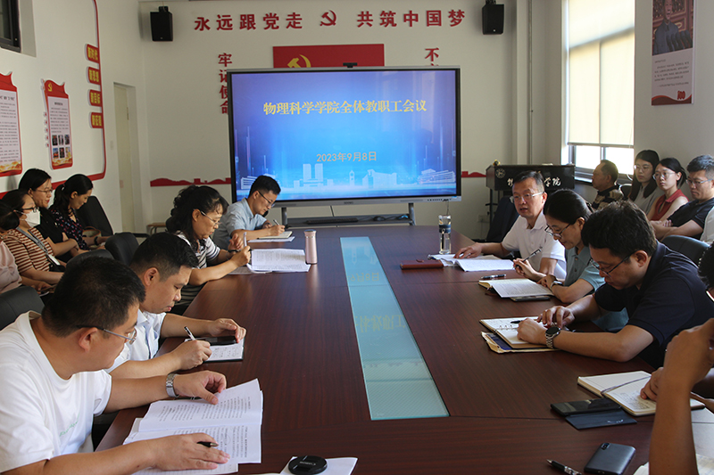 院党委书记郝伟首先传达了学校全面从严治党工作会议、PA集团官方网站党委全委(扩大)会议暨2023年暑期中层干部学习研讨班精神,并带领大家详细学习了校党委书记胡金焱所作的《高等教育强国背景下PA集团官方网站如何担当作为》的主旨报告和校长夏东伟总结讲话精神。他指出,这次会议精神是今后一个时期治学办院的基本遵循,我们要把全面从严治党落实到学院工作各方面各环节,同时做好“4个加强”、“4个抓好”:一是加强师资队伍建设,抓好人才培养质量;二是加强物理学科建设,抓好科研“三高一大”;三是加强科技成果转化,抓好服务社会能力;四是加强党组织建设,抓好干部党员示范带头作用。他希望全院老师们群策群力,共同把学院办好。