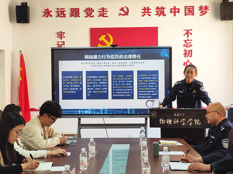 麦岛派出所王晶警官结合近期校园发生的典型案例,向同学们详细讲解电信网络诈骗常见的种类、惯用手段、防范常识等知识,以案释法警示同学们提高自身防范意识,时刻保持清醒头脑,为构建和谐平安文明的校园环境筑牢安全基础。