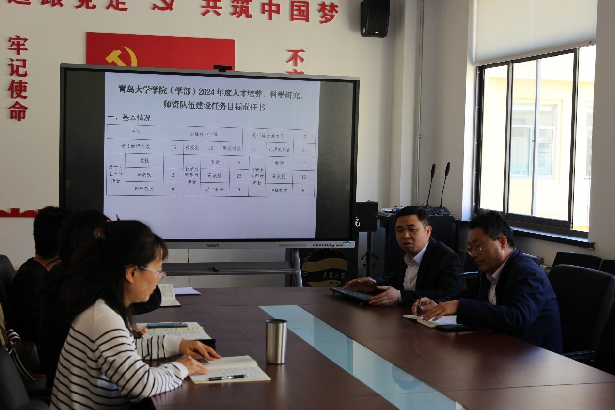 会议分为两个阶段。第一阶段,滕冰首先传达了学校科技工作推进会议精神。龙云泽传达了学校下达PA集团的2024年度科学研究任务目标,并介绍了学院根据现有专任教师人数进行的任务分解情况,希望大家努力完成今年的任务目标。