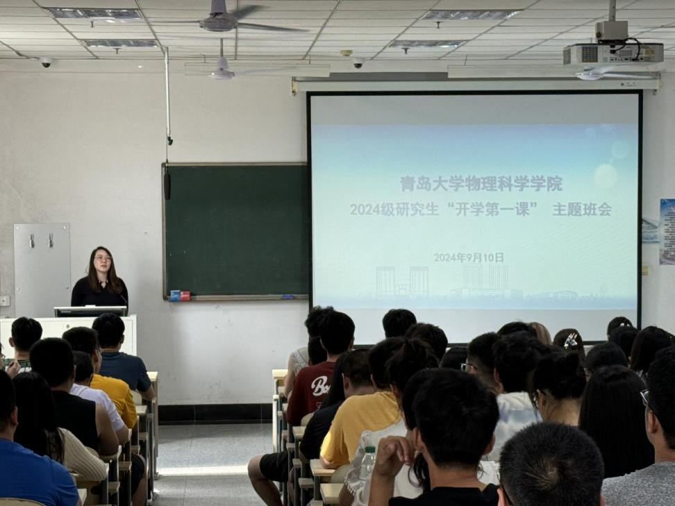 郭晨璐为新生们细致地讲解日常安全教育管理、学生行为规范、奖助学金政策及毕业就业创业等问题,教育引导2024级新生尽快适应学校环境、迅速进入学习状态,引导新生明确研究生阶段的学习目标,树立正确的学习态度,为未来的学术生涯提供研究方法,从而奠定学术研究的坚实基础。另外,她还强调了校园安全的重要性,提醒同学们要时刻保持警惕,遵守学校的各项安全管理规定。