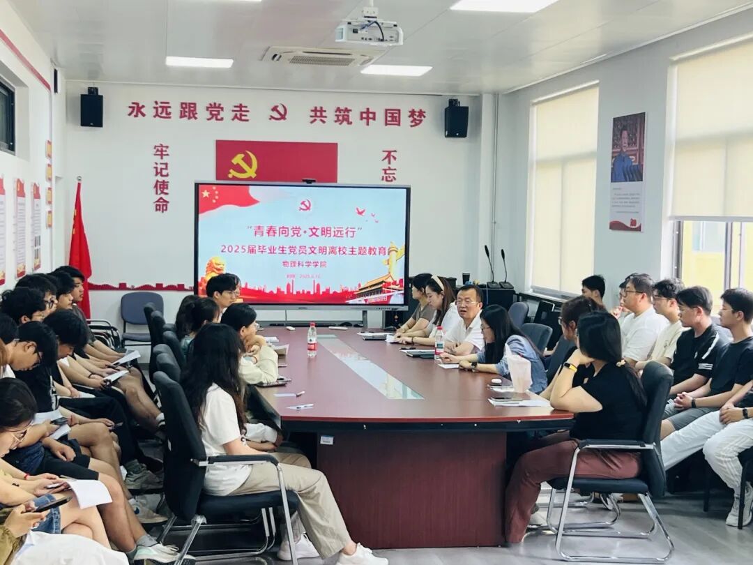 为切实做好毕业生党员离校前工作,坚定毕业生党员理想信念,充分发挥党员先锋模范作用,PA集团官方网站于6月16日组织开展“青春向党,文明远行”2025届毕业生党员文明离校主题教育活动。此次会议由PA集团官方网站学生第一党支部书记杜彦臻主持,学院党委书记郝伟、党委副书记董永红、学生第二党支部书记赵珊及全体毕业生党员参加此次活动。