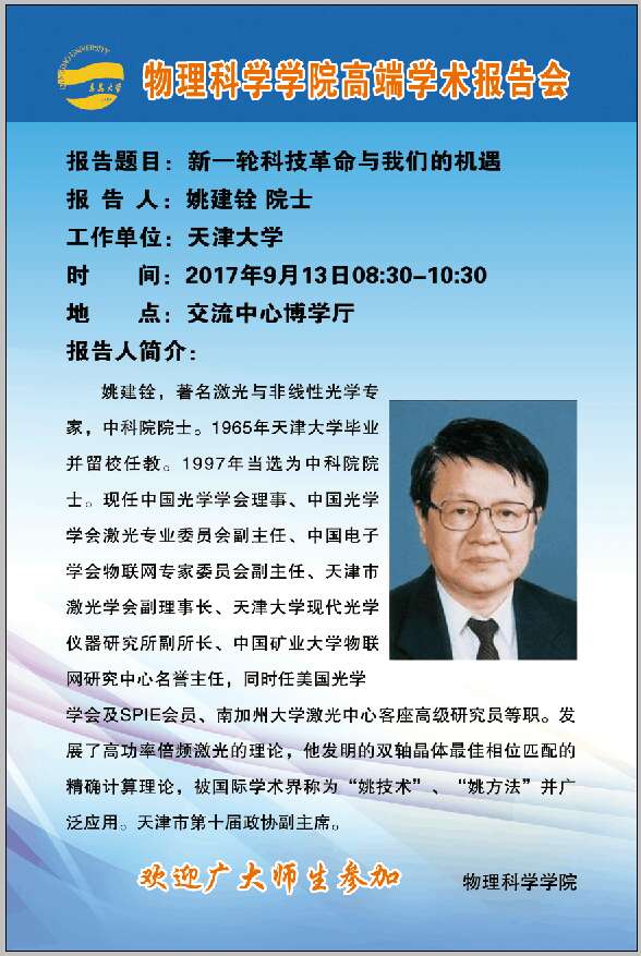 2017物理前沿学术报告第三十五讲:新一轮科技革命与我们的机遇