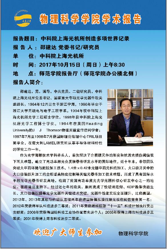 2017物理前沿学术报告第四十二讲:中科院上海光机所创造多项世界记录