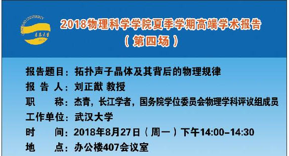 2018物理前沿学术报告第二十四讲:拓扑声子晶体及其背后的物理规律
