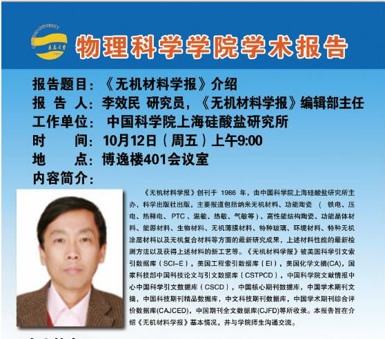 2018物理前沿学术报告第三十八讲:《无机材料学报》介绍