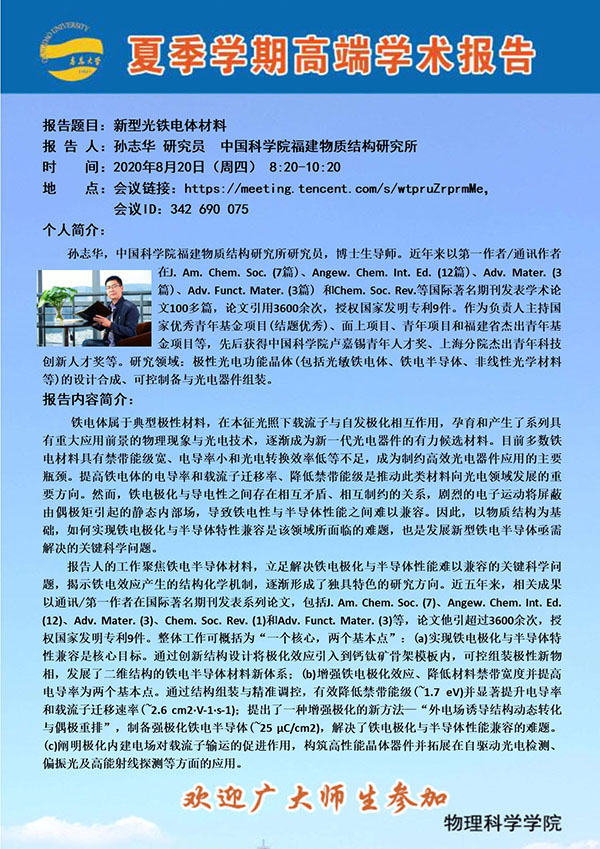 下一篇:夏季学期高端学术报告:Application of Ultrafast Laser in Condensed Matter Physics