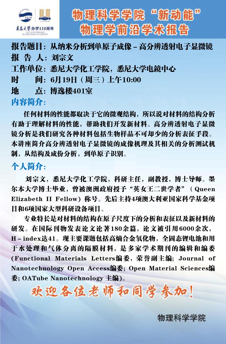 “新动能”物理学前沿学术报告13:从纳米分析到单原子成像-高分辨透射电子显微镜