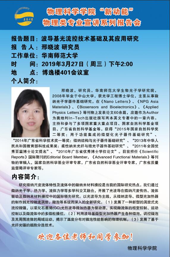 “新动能”物理类专业宣讲报告2:波导基光流控技术基础及其应用研究
