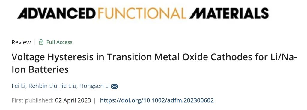 近日,PA集团教师在国际顶级期刊《Advanced Functional Materials》发表了题为“Voltage Hysteresis in Transition Metal Oxide Cathodes for Li/Na-Ion Batteries”的综述论文(Adv. Funct. Mater. 2023, 2300602)。PA集团官方网站为第一单位,李洪森教授为本文的通讯作者,硕士研究生李菲(被南开大学录取攻读博士学位)、刘仁斌为共同第一作者。