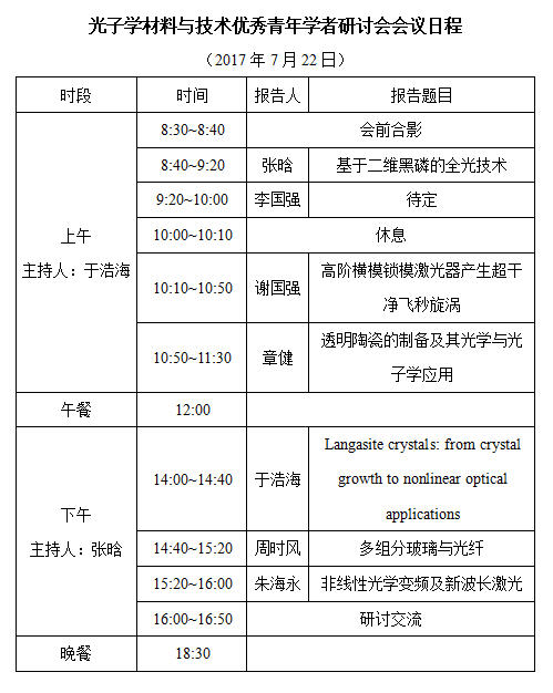 下一篇:2017年“光子学材料与技术优秀青年学者研讨会”会议通知