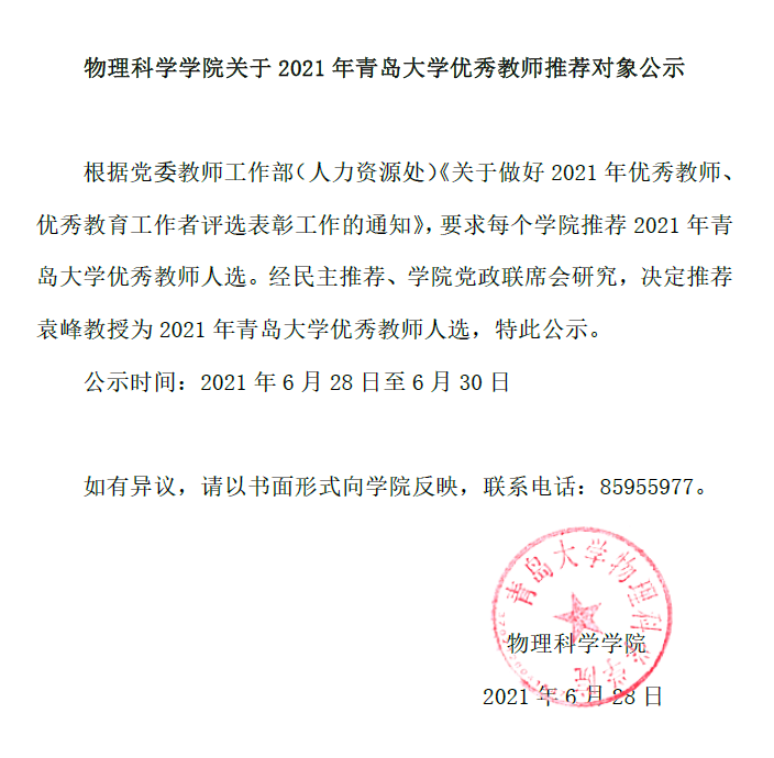 PA集团官方网站关于2021年PA集团官方网站优秀教师推荐对象公示