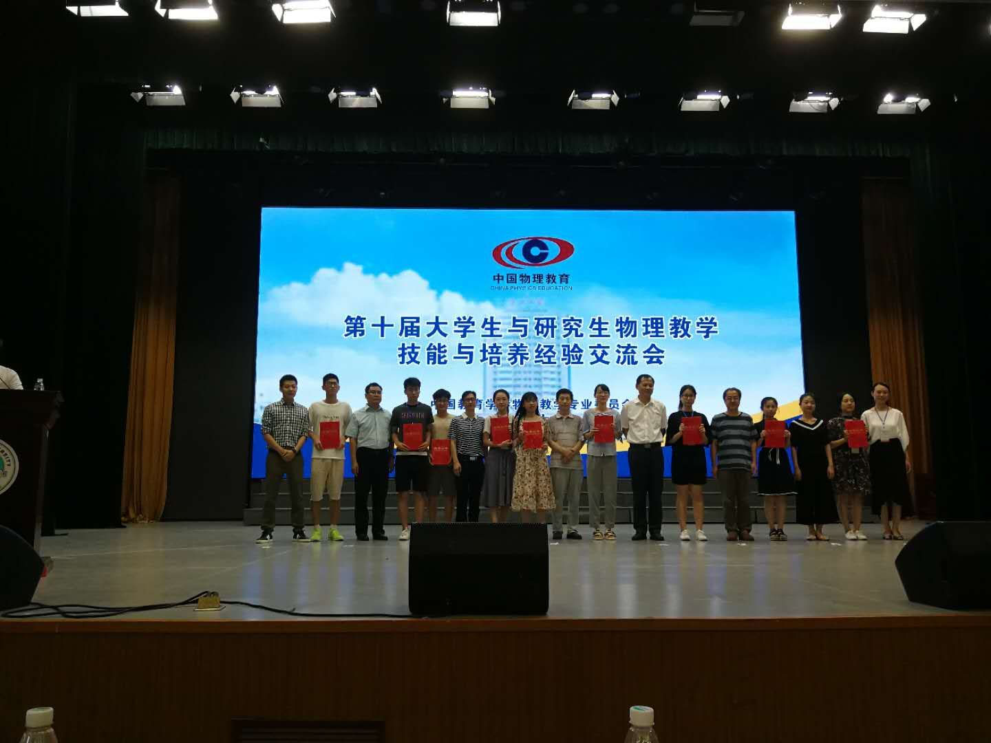 7月29日至31日,全国第十届大学生与研究生物理教学技能与培养经验交流会在湖北荆州长江大学举行。PA集团学子取得了优异的成绩,其中研究生高璇和本科生赵婧妤获得了“教学技能标兵”称号,本科生梁纹豪获得了“教具展示能手”称号。