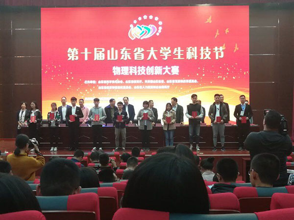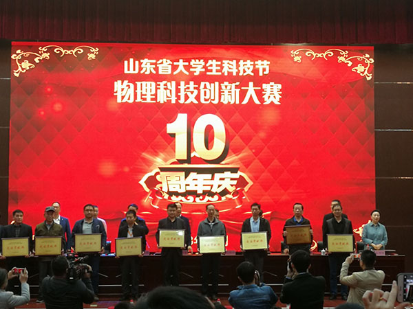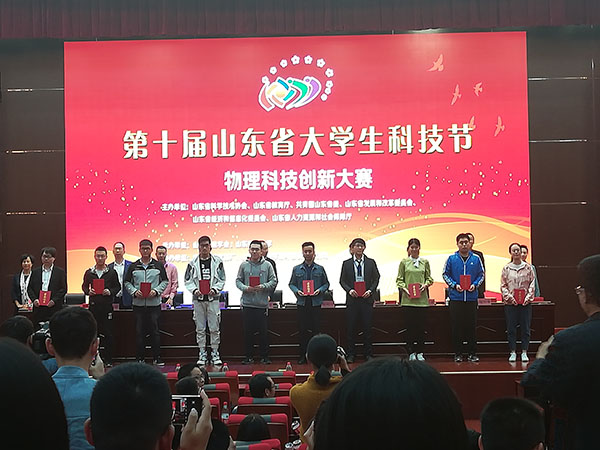 10月13日至14日,山东省第十届大学生科技节“南激光杯”物理科技创新大赛在山东省师范大学长清湖校区举行。PA集团共有7组作品参加本次大赛并取得了不俗的成绩,其中丁聪颖、滕菲和苏琪三组同学的作品获得一等奖,谭岑孝同学组的作品获得二等奖,白堂龙、曹枢旋和陈志勇三组同学的作品获得三等奖,即本次大赛共获一等奖3项、二等奖1项、三等奖3项。 我校荣获大赛十周年突出贡献奖荣誉。