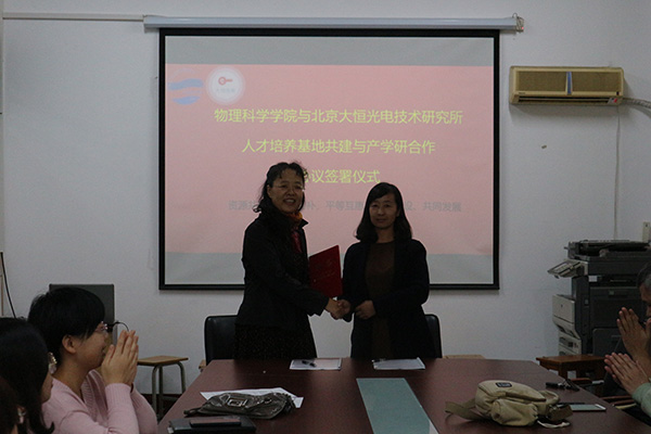11月18日下午,北京大恒光电高校实验部主管经理李秀芳应邀来我校PA集团官方网站进行交流访问。院长滕冰代表学院在博逸楼401会议室与大恒光电技术研究所签署了“人才培养基地共建与产学研合作协议”。