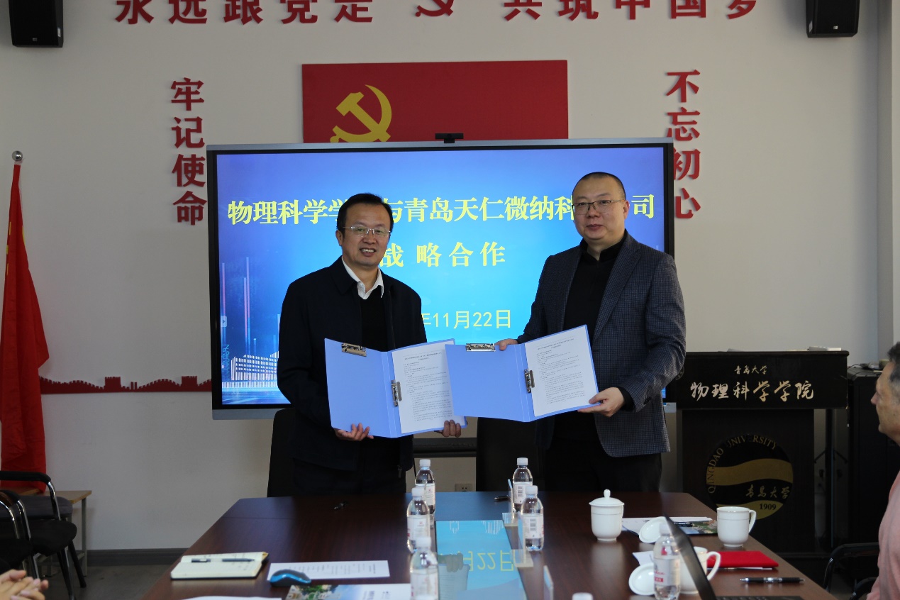 11月22日上午,PA集团官方网站与青岛天仁微纳科技有限公司产学研合作签约暨客座教授聘任仪式在博逸楼401会议室举行。青岛天仁微纳科技有限公司董事长翼然博士、高级专家Massimo Tormen博士、监事张章、HR总监孙岩青、对外合作部董征、郝伦,PA集团官方网站党委书记郝伟、副院长张永成、系主任钟石磊、钟德高和学院学生代表参加会议,会议由副院长张军主持。