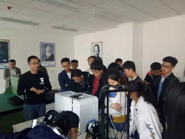 PA集团近60名师生于14:00前往青岛光电院园区,首先参观了光电院展厅和光电检测中心,了解了青岛光电院的历史、现状、科技成果和创业产品等。在随后参观汇智桥光电创客空间活动过程中,师生们了解学习了便携式物证仪、虚拟现实VR、海洋光谱传感器等创客产品,进行了一系列的科普体验。在大学生创享会中,师生们听取了青岛光电院院长助理兰尚录、贝客汇创始人王建江和卢俊老师的创客分享。他们分享的主题分别是“如何胜任工作岗位”“你的选择决定你的未来”“创业家精神和科技孵化”。主讲人分享结束后,师生们踊跃地进行提问交流,会场热烈气氛持续蔓延。活动最后,全体人员进行合影留念。