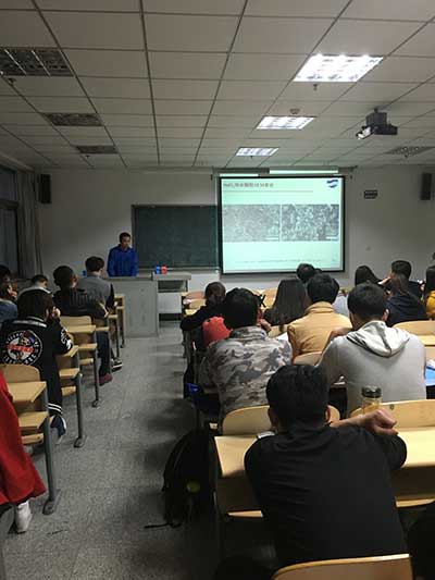2017年4月12日晚6:30,PA集团2014级研究生冯红磊在浩园307教师作了题为“金属氧化物纳米材料的制备、微观结构及其物理化学性能研究”的学术报告。学院2016级全体研究生共50余人参加了报告会。报告会由学院副院长滕冰教授主持。