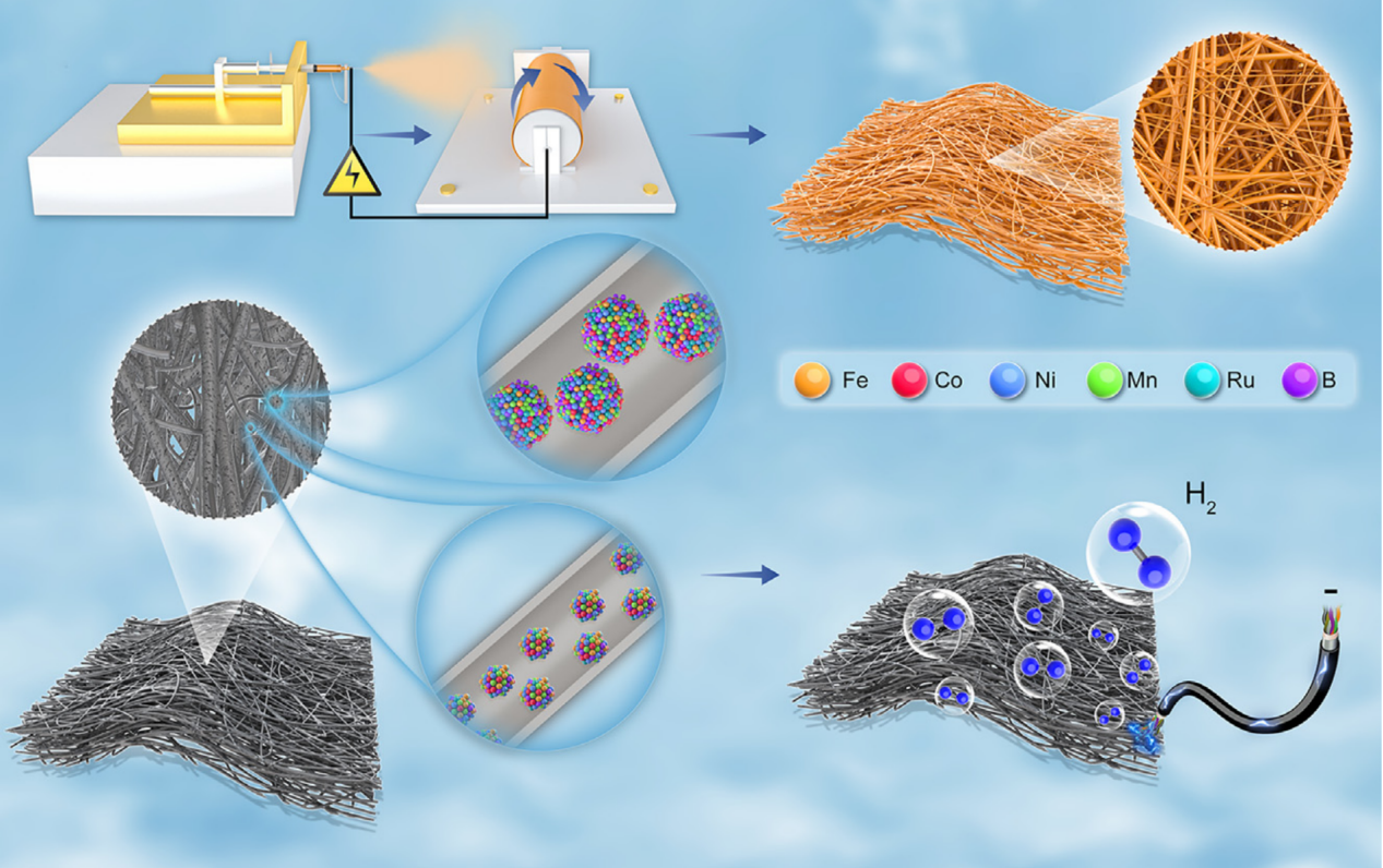 近日,PA集团博士研究生刘进华以第一作者在Cell Press跨学科综合期刊《iScience》发表了题为“Dendritic boron and nitrogen doped high-entropy alloy porous carbon fibers for high-efficiency hydrogen evolution reaction”(树枝状硼和氮元素掺杂高熵合金多孔碳纤维用于高效析氢反应)的研究论文(iScience, 27: 109616 (2024))。PA集团龙云泽教授与纺织服装学院郑杰老师为该论文的通讯作者。