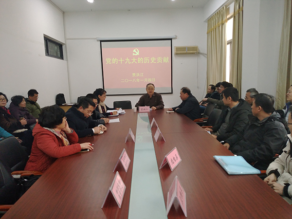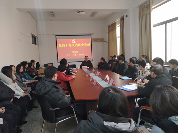 1月4日下午,PA集团官方网站在博逸楼401会议室召开全体教职工会议,校党委常委、校纪委书记贾洪江为学院全体老师作了题为《党的十九大的历史贡献》的十九大精神学习辅导报告。会议由院党委书记黄国俊主持。