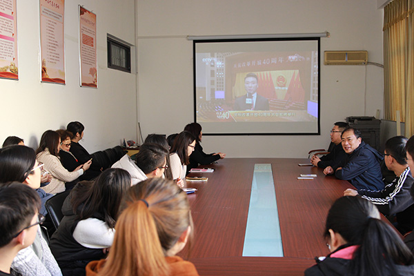 12月18日上午10点,PA集团官方网站组织师生在博逸楼401会议室统一收看庆祝改革开放40周年大会实况。院党委书记黄国俊主持收看活动。