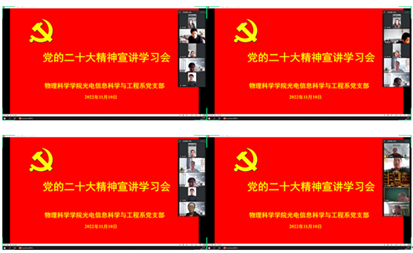 PA集团官方网站各党支部也纷纷以不同形式开展了党的二十大精神学习活动。应用物理系党支部召开二十大精神专题学习会。所有党员重温入党誓词,学习党的二十大报告和党章修正案,部分党员从高校教师职业角度出发分享了学习二十大精神的感悟。