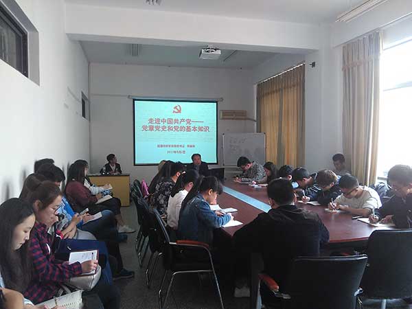 5月2日中午,PA集团2017年春季学期入党积极分子培训班第二讲开讲,院党委书记黄国俊在博逸楼401会议室为全体入党积极分子作了题为《走进中国共产党——党章党史和党的基本知识》的主题报告。院党委副书记周志强参加培训班报告会。