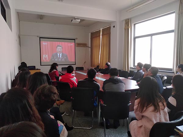 10月18日上午,PA集团在博逸楼401会议室统一收看了党的十九大开幕式实况。学院党政领导黄国俊、滕冰、周志强、王乙潜,各系(中心)主任和副主任、各支部书记和副书记、机关全体工作人员、部分教职工以及学生党员代表等40余人参加了收看活动。