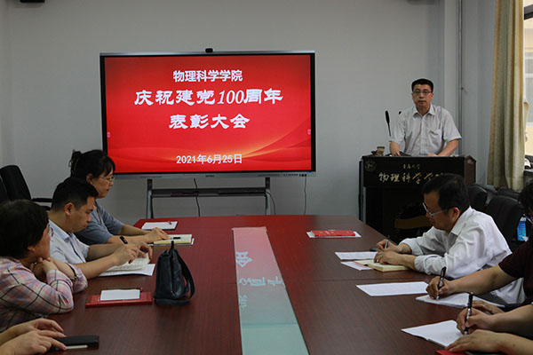 会上,应用物理系党支部书记李延强代表院优秀党务工作者、物理教育系主任张芳代表院优秀教师共产党员、研究生田雪代表优秀学生共产党员分别作了发言。