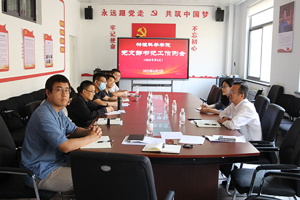 6月2日下午,学院在博逸楼203会议室召开2022年度党支部书记第4次工作例会。院党委书记郝伟主持会议,党委副书记董永红及各党支部书记参加会议。
