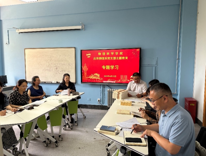 6月15日下午,应用物理系党支部在博逸楼203召开主题教育学习会,院党委副书记、院长滕冰参加学习会,会议由应用物理系党支部书记李延强主持。
