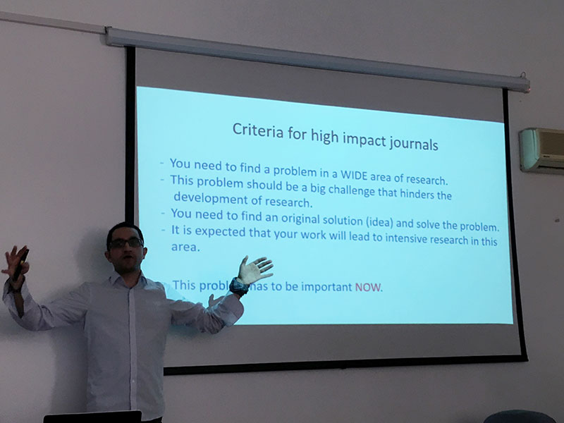 会上,Dr. Shalaby Mostafa以提问题的方式引出写高质量论文的重要性、高质量论文的写作要素以及发表论文需注意的几个要点这三个方面,并进行了详细耐心的解读,强调解决当下的惠及更多人利益的前沿问题的创新方法是科学研究的目标。最后解释了论文与专利之间的关系。报告结束后,他就同学们提出的如何更好地用英语表述自己的研究成果以及怎样更好地引起杂志审稿人的兴趣等问题做了详细解答。本次报告也是Dr. Shalaby Mostafa在我校为期三周的学术交流期间的最后一场报告,他还细心地为每位参会者准备了小礼物,同学们用热烈的掌声感谢Dr. Shalaby Mostafa带来的精彩报告,场面十分温馨。