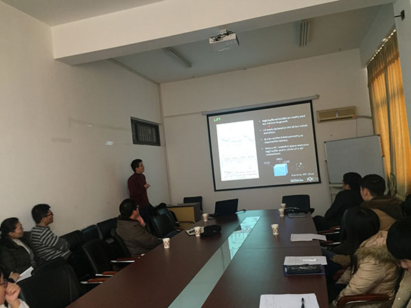 苗国兴教授围绕磁性隧道结中的自旋输运进行了系统的讲解分析,并介绍了其课题组近期在新型磁性隧道结的重要进展。苗国兴教授课题组首次提出并成功制备了基于LiF材料的磁性隧道结,该器件在磁性存储器件和传感器中具有广泛的应用空间。这次全英文的精彩学术报告,拓宽了教师和研究生的专业视野,还强化了师生的科研意识和创新意识。报告会后,苗国兴教授与在场师生就相关问题进行了热烈的学术交流与讨论。