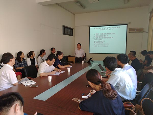 9月16日上午,原国家自然科学基金委员会物理一处张守著处长应邀来PA集团官方网站在博逸楼401会议室为师生作了题为《基金情况介绍与写好申请书注意事项》的报告,来自学校各个理工科院系的50余位教师聆听了报告。