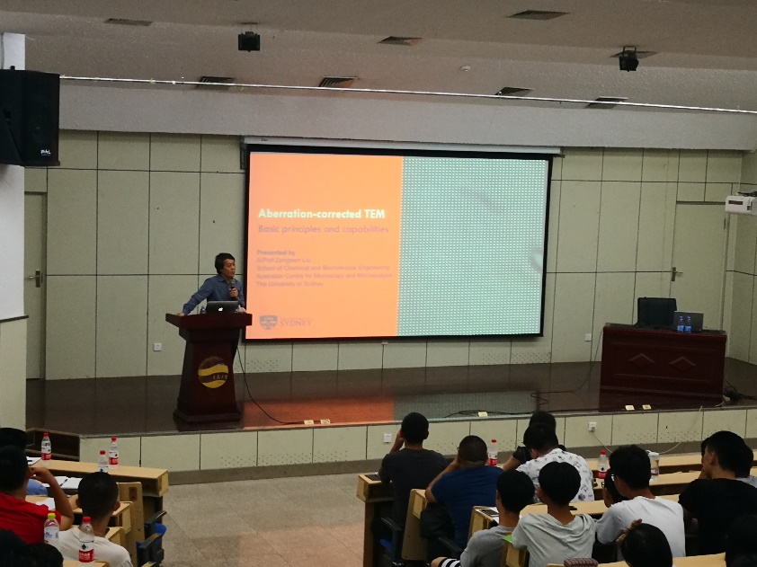 在报告中,刘宗文从简单的光学分辨原理讲起,由浅入深地讲解了透射电子显微镜(TEM)基本原理、发展历史,并通过大量电镜图片生动地介绍了电镜领域的前沿进展,随后介绍了悉尼大学及澳大利亚显微分析中心的基本概况。刘宗文还向同学们介绍了澳大利亚高校招收留学生的情况,并鼓励同学们出国留学深造。报告会后,刘宗文就透射电镜分析及赴澳留学等问题与师生进行了深入交流。