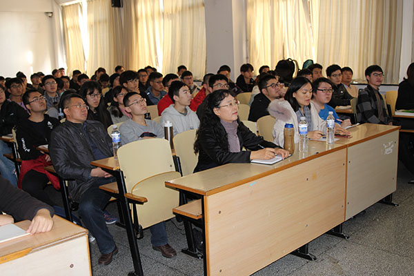 在报告中,丁洪首先介绍了根据基本粒子自旋分类的玻色子和费米子,然后重点介绍了宇宙中遵守费米统计的基本粒子(费米子)及其分类:有质量的狄拉克费米子、无质量的具有相反手性的外尔费米子、正反粒子相同的马约拉纳费米子以及人类目前在粒子物理领域对这三种费米子的发现及寻找,目前人们在真实的宇宙中只发现了狄拉克费米子,还未发现外尔费米子或马约拉纳费米子。丁洪指出,宇宙其实也是一种广义上的“材料”,人类其实也可以在固体材料这个“宇宙”中寻找新奇费米子。在固体材料中,一些低能准粒子与基本粒子可能遵循相同的物理规律,形成固体宇宙的费米子。近年来人们在固体宇宙中发现了外尔费米子,并找到了马约拉纳费米子存在的较强实验证据。同时人们又意识到固体宇宙与真实宇宙有差别,可能存在新型的费米子,如可能存在带有三重简并费米子。在这个报告中,丁洪也结合自己的角分辨光电子能谱(Angle Resolved Photo Emission Spectroscopy)实验方面的工作,介绍了其研究组在固体宇宙中发现外尔费米子、三重简并费米子和马约拉纳费米子的过程及相应发现。报告激发了学生对新奇费米子的极大兴趣,报告后学生踊跃提问,丁洪耐心地给学生们一一作了解答,气氛非常活跃。