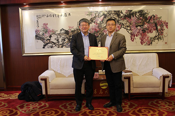 12月18日上午,中国科学院物理所丁洪研究员应邀访问我校。校党委常委、副校长肖江南在办公楼204接待室会见了客人,并为其颁发了兼职教授聘书。随后,丁洪在博学楼304教室为学院师生作了题为《寻找固体宇宙中的新奇费米子》的学术报告,报告会由院长滕冰主持。