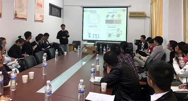 报告中,张校刚教授从双电层电容的基础与表界面研究、赝电容的基础与表面反应研究以及电活性电解液的界面反应研究这三个方面出发,阐述多种超级电容器体系的发展现状和存在问题,归纳了超级电容器表界面研究的原位表征手段和科研探究思路。报告结束后,张校刚教授和与会的师生就相关问题进行了良好的交流互动。此次报告学术气氛浓厚,讨论问题深入,发言积极踊跃,取得了很好的学术交流和开阔视野的效果。