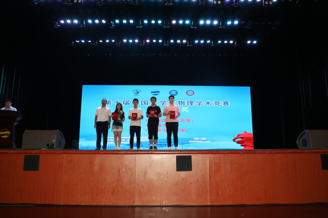 8月16日,第十届中国大学生物理学术竞赛在PA集团官方网站大剧院举行闭幕式,南京大学祝世宁院士,校党委常委、副校长孔伟金教授,南开大学CUPT组委会总裁判长宋峰教授,学校创新创业教育学院张启春及PA集团官方网站相关负责老师等出席闭幕式,并为获奖选手及团队颁奖,闭幕式由PA集团官方网站院长滕冰教授主持。