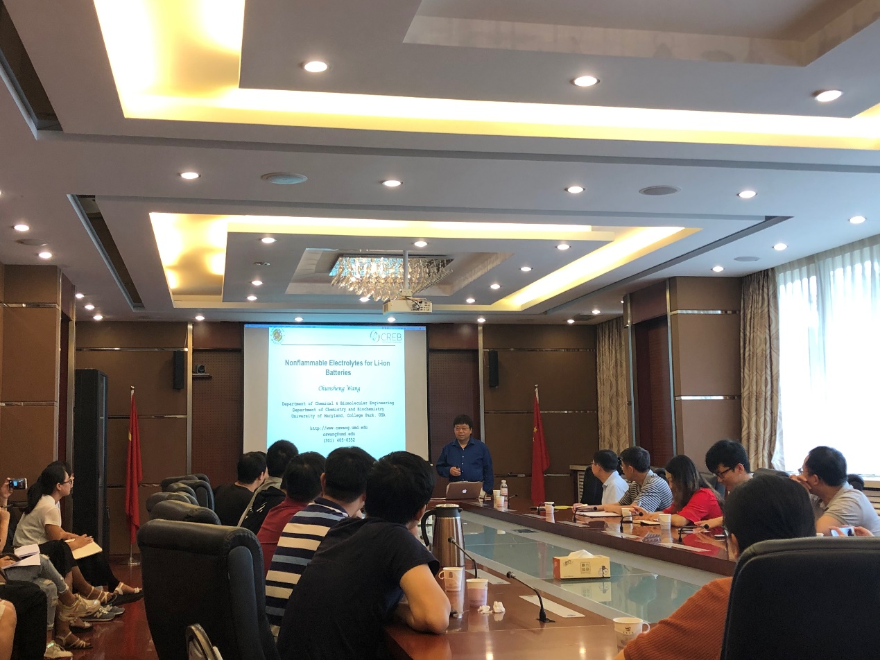 8月24日上午,美国马里兰大学化工与分子生物工程系王春生教授应邀来我校交流访问,并在办公楼201会议室为师生作了题为《Non-flemmble Electrolytes for Li-ion Batteries》的学术报告。报告会由PA集团官方网站郭向欣教授主持。
