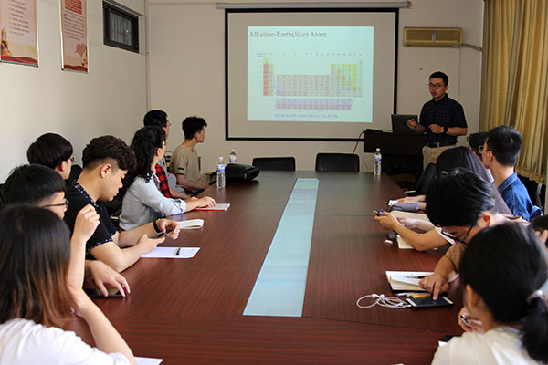 5月28日上午,西安交通大学张仁副教授和马胜利老师受邀来PA集团进行学术交流,在博逸楼401会议室张仁为师生作了题为《基于碱土金属原子的量子模拟》的学术报告,马胜利向学院本科生作了关于报考西安交通大学的招生宣传。报告由学院特聘教授邹鹏主持,学院相关师生参加了报告会。